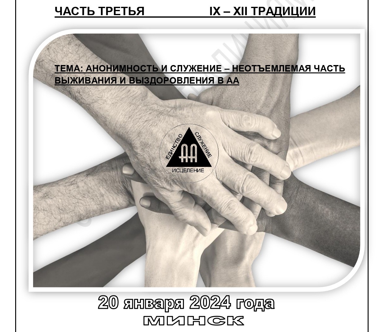МОКО приглашает 20 января 2024 года в 11.00 на 3-й семинар по 9-12 традиции АА